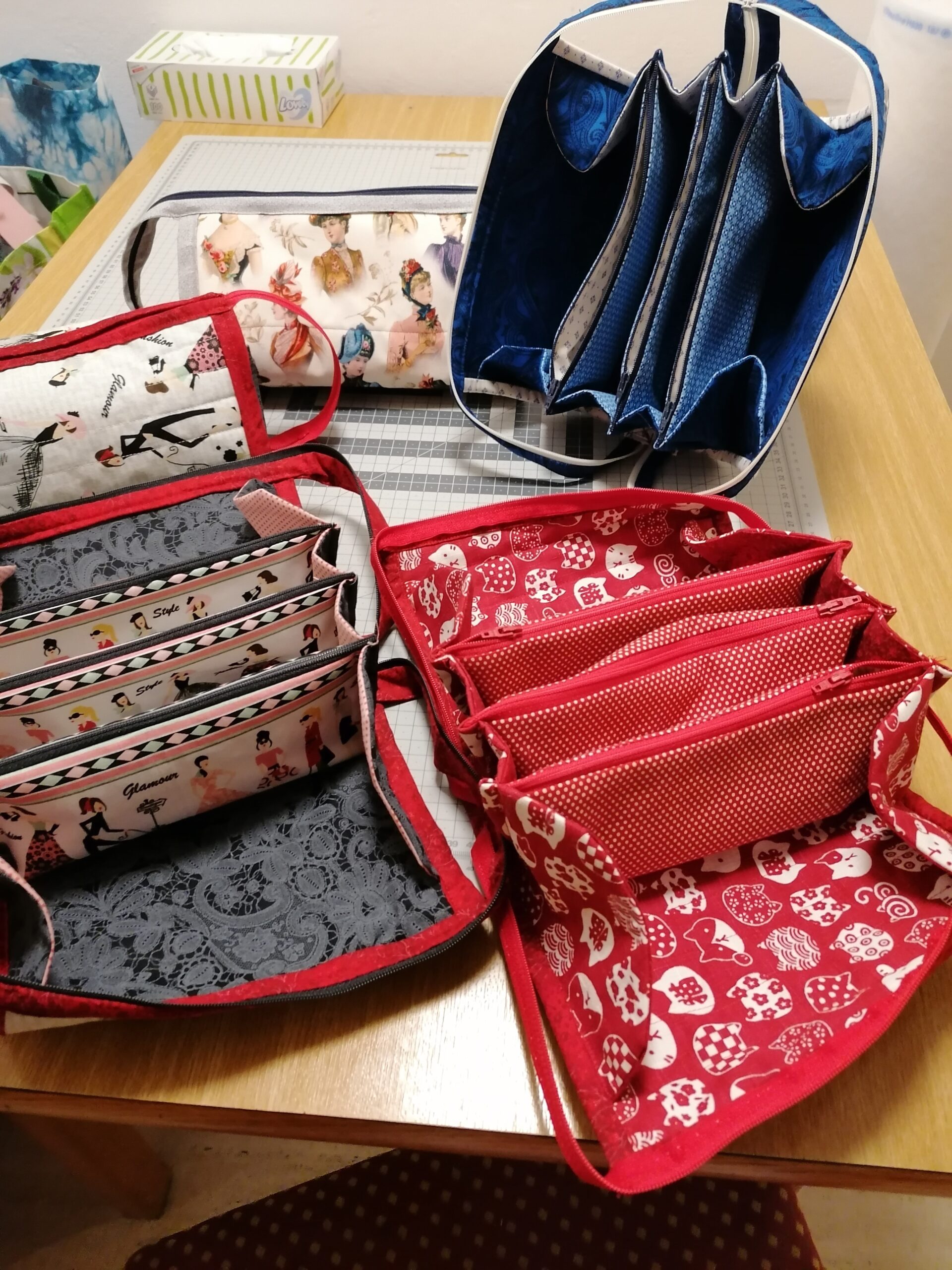Zum Verfestigen der Technik haben Monika Hermanns und ich am Samstag gleich noch je eine Utensilo-Tasche genäht. Jetzt ging es uns natürlich wesentlich schneller von der Hand.