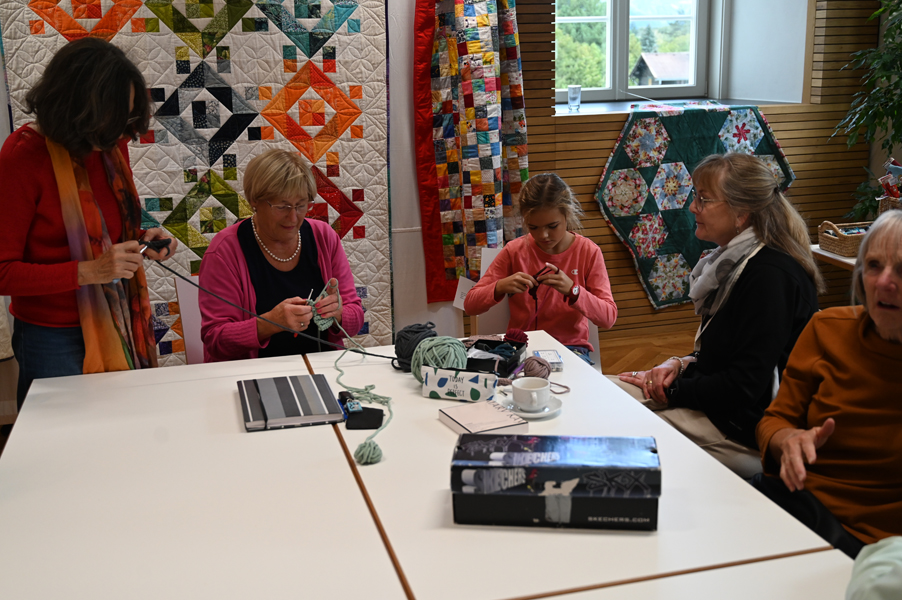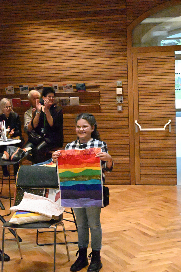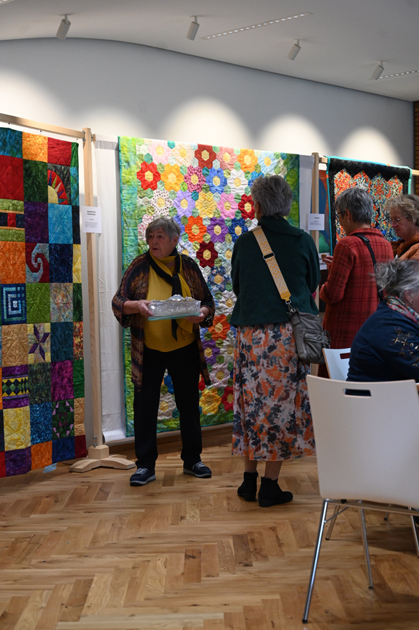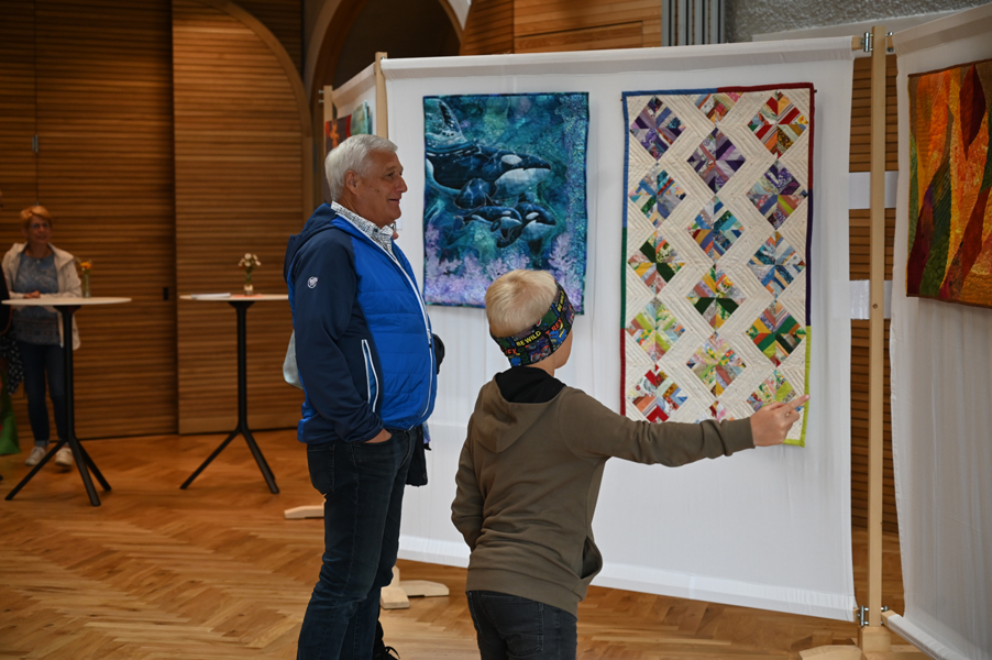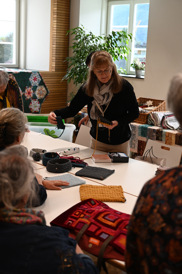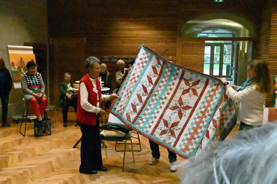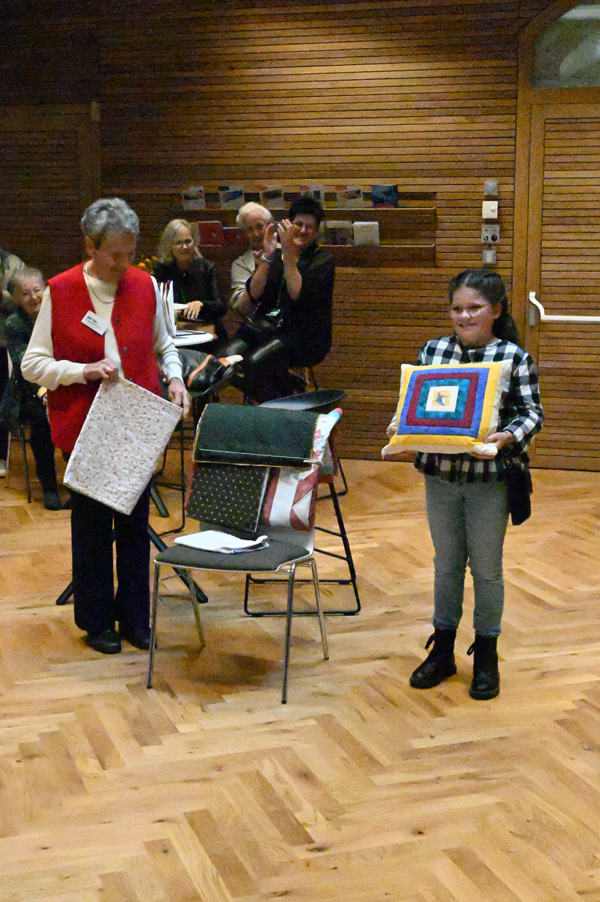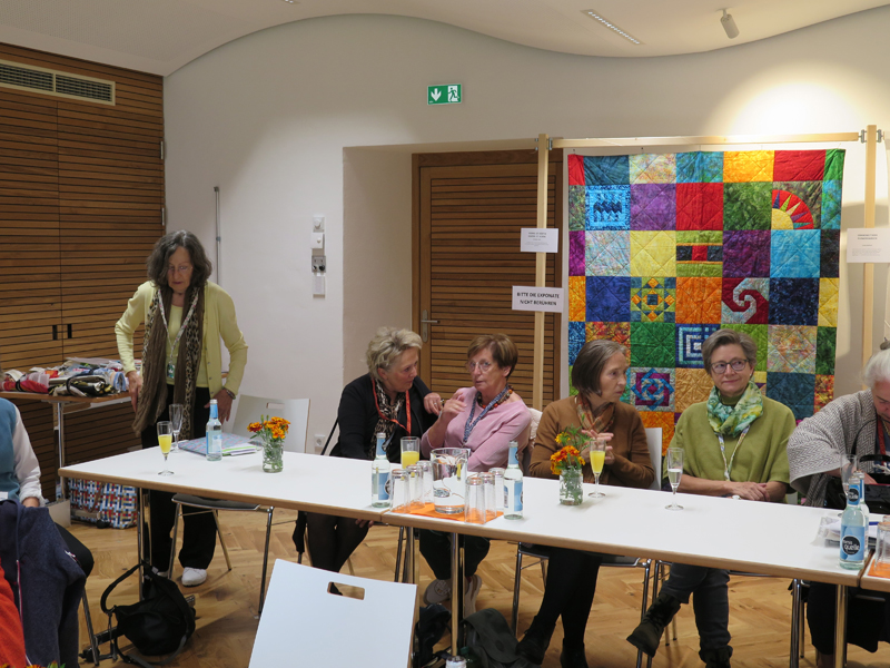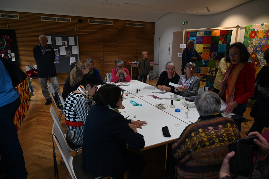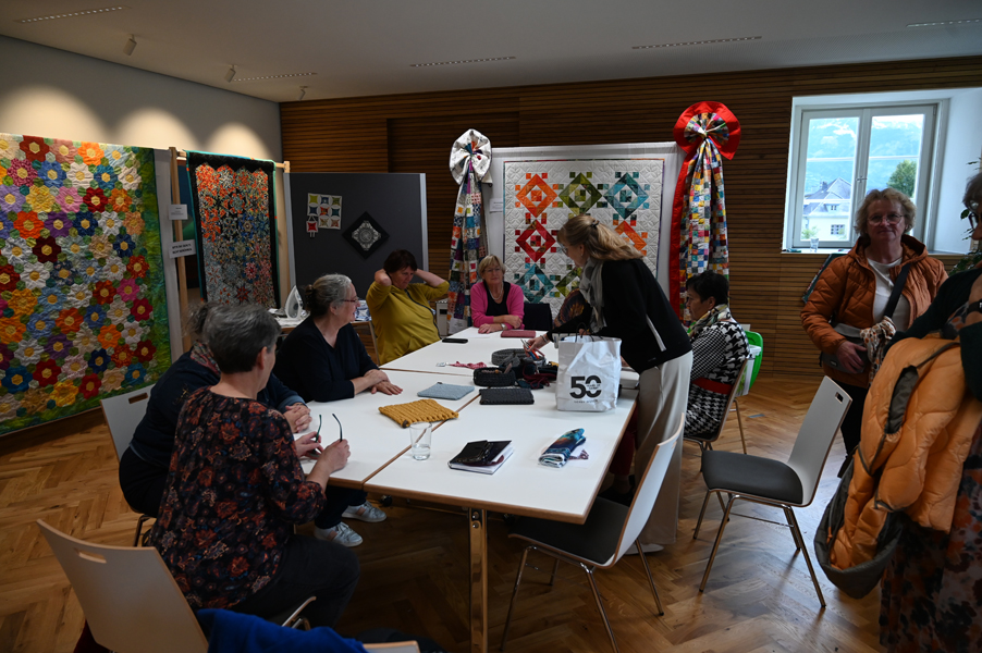 Clara, unsere jüngste Quilterin, zeigte als erste ihre Werke und freute sich über den Beifall, andere folgten ihrem Beispiel.