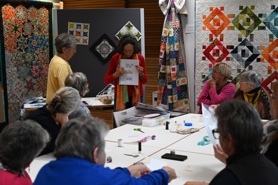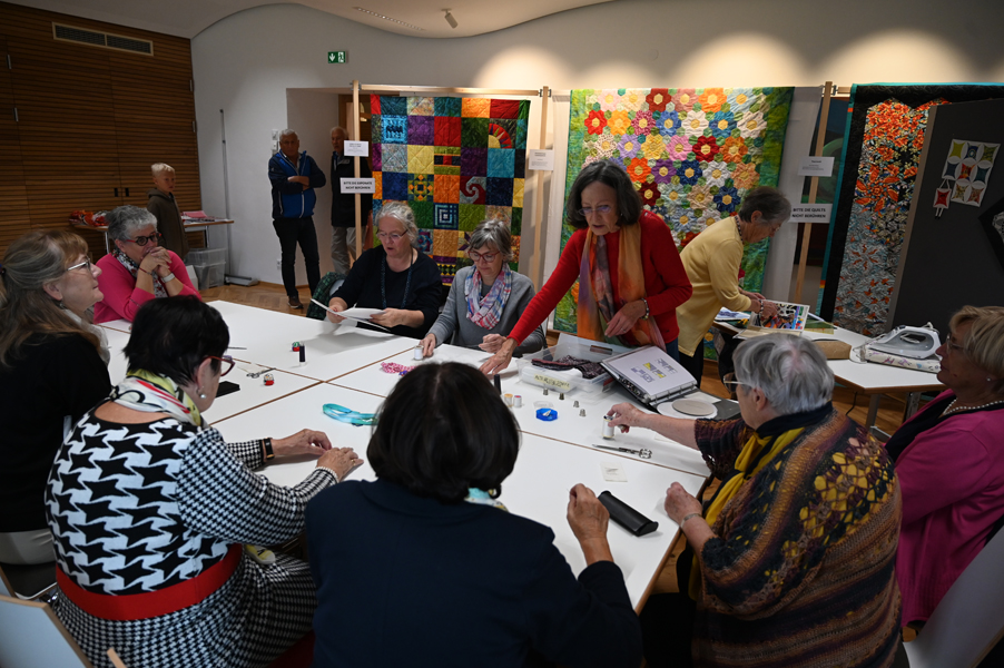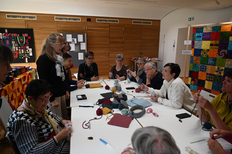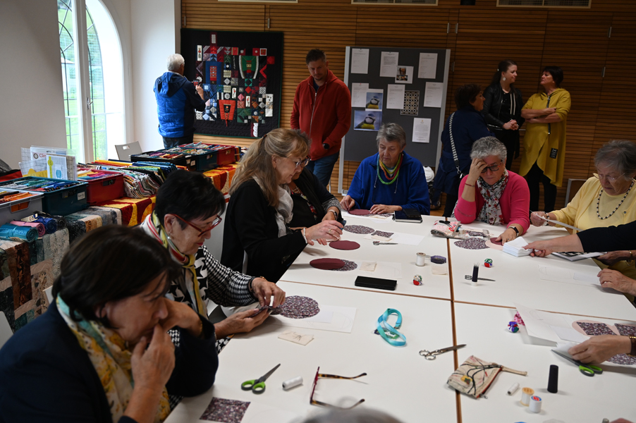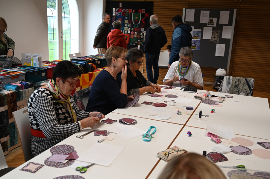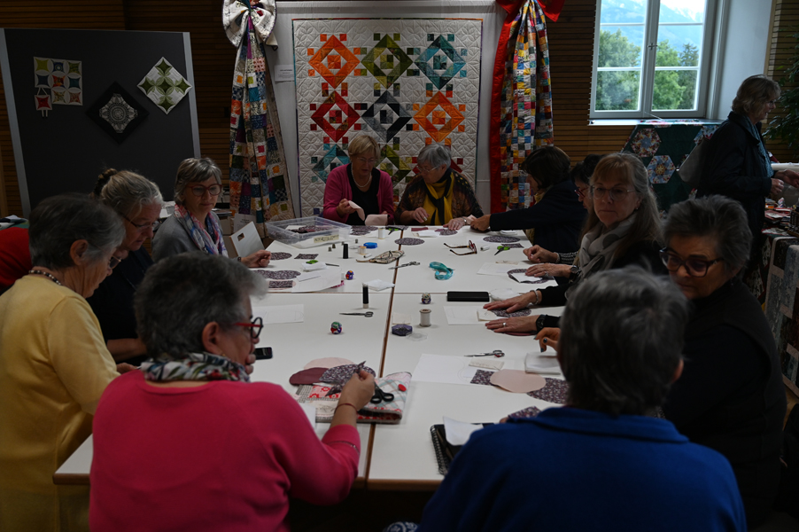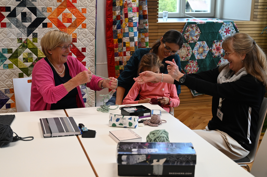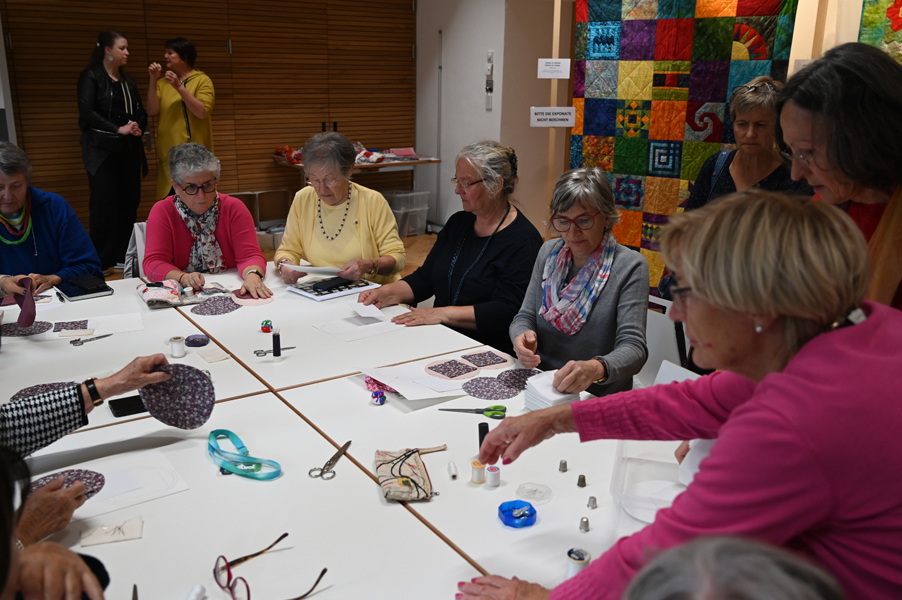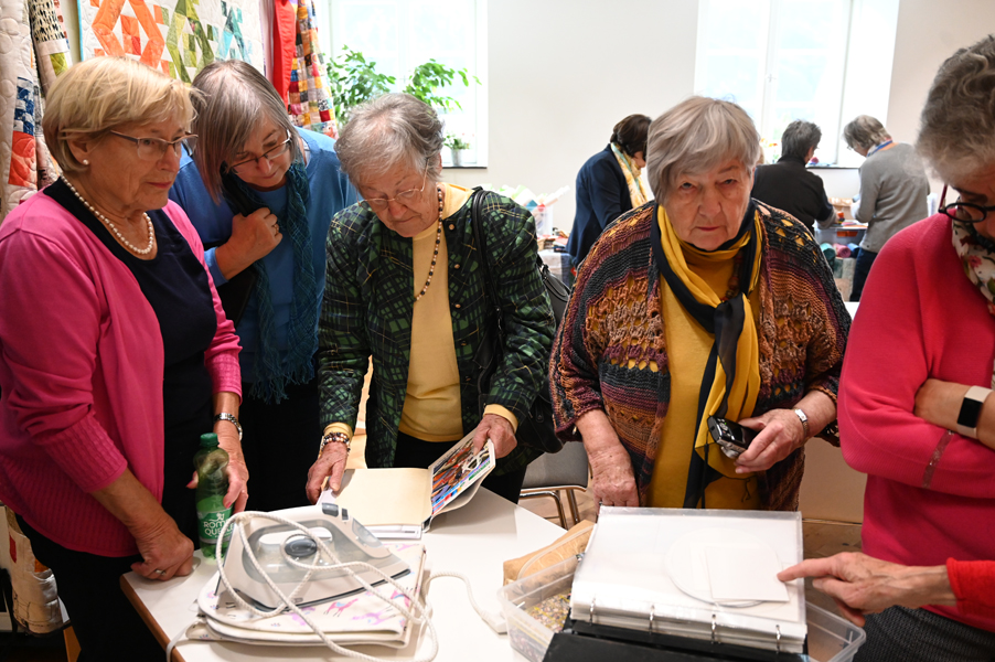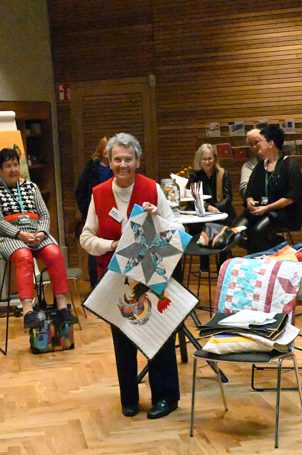 Clara, unsere jüngste Quilterin, zeigte als erste ihre Werke und freute sich über den Beifall, andere folgten ihrem Beispiel.