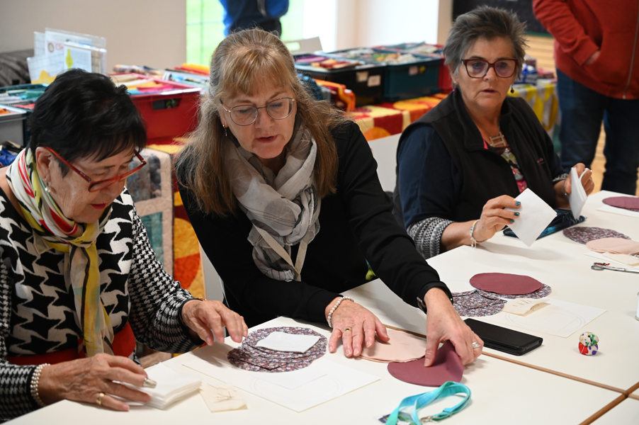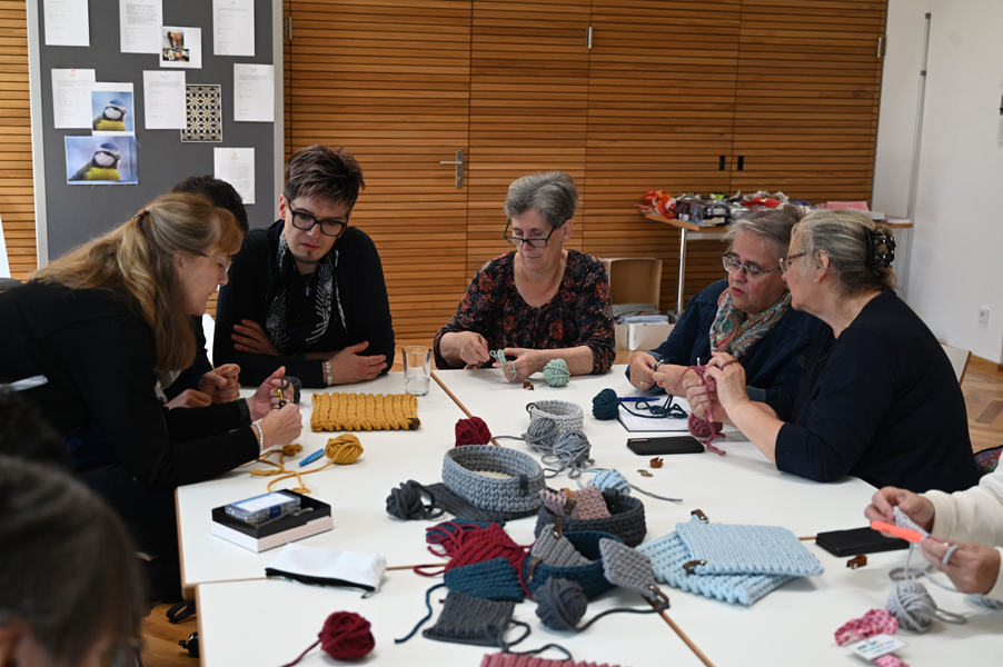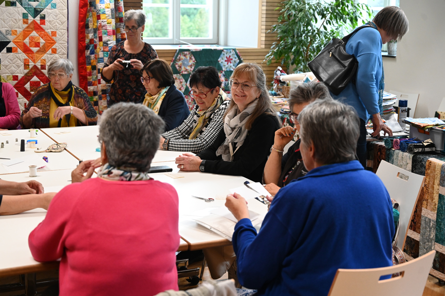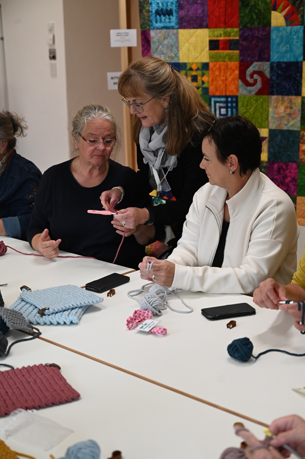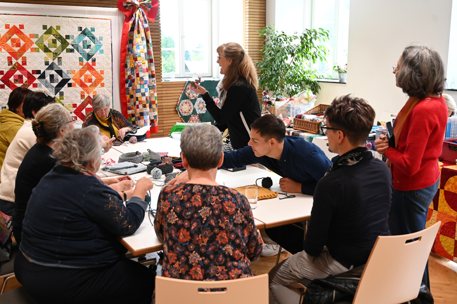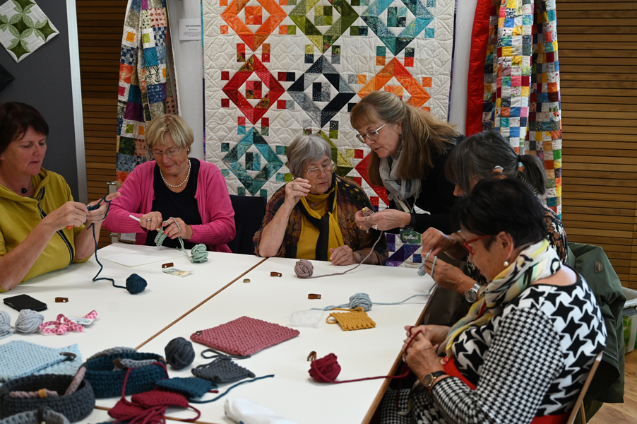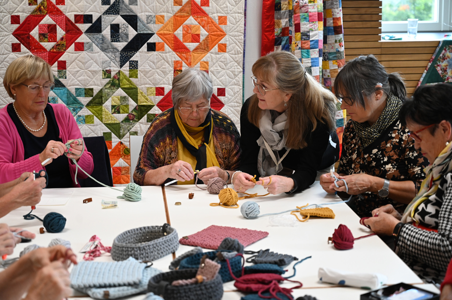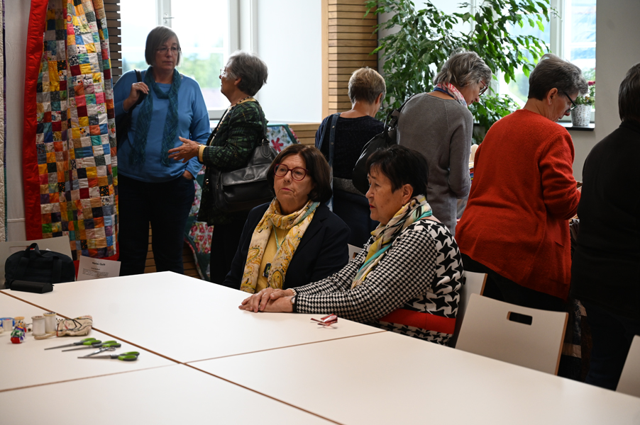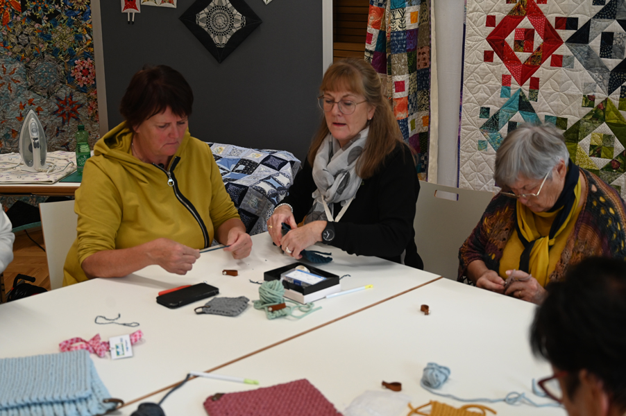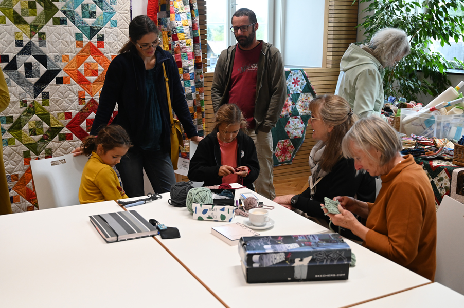 Clara, unsere jüngste Quilterin, zeigte als erste ihre Werke und freute sich über den Beifall, andere folgten ihrem Beispiel.