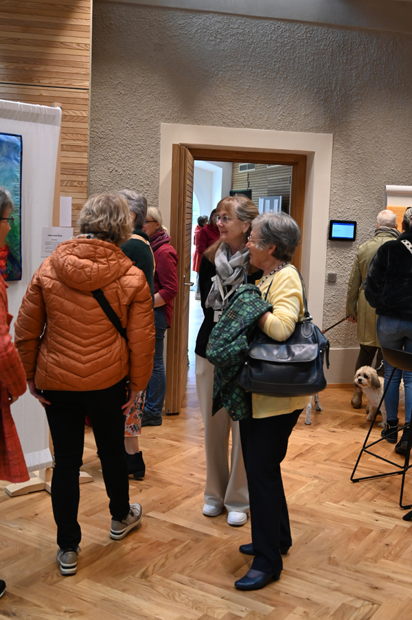 Das neue Bildungshaus in Osttirol wurde an das Pfarrhaus der Kirche St. Andrä angebaut und liegt erhöht bei Lienz. Der alte Widum wurde in einen hellen, offenen Ort verwandelt, im modernen Zubau finden sich Räume verschiedener Größe, lichtdurchflutet und mit allen Raffinessen ausgestattet. In diesen Räumen fand an zwei Tagen, Samstag, 14. September und Sonntag, 15. September 2024, unsere Challenge-Ausstellung mit dem Thema Farbenrausch statt.
