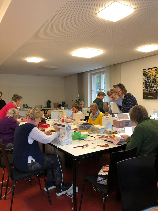Am 14. Jänner 2025 sind wir, die Unterländergruppe, mit vollem Elan in das neue Jahr gestartet. Gisela gab einen Workshop über das Applizieren mit der Maschine. Sie hatte einen wunderschönen Stoff und dazugehöriges Material ausgewählt. Ihr Kurs erfreute sich reger Teilnahme.
